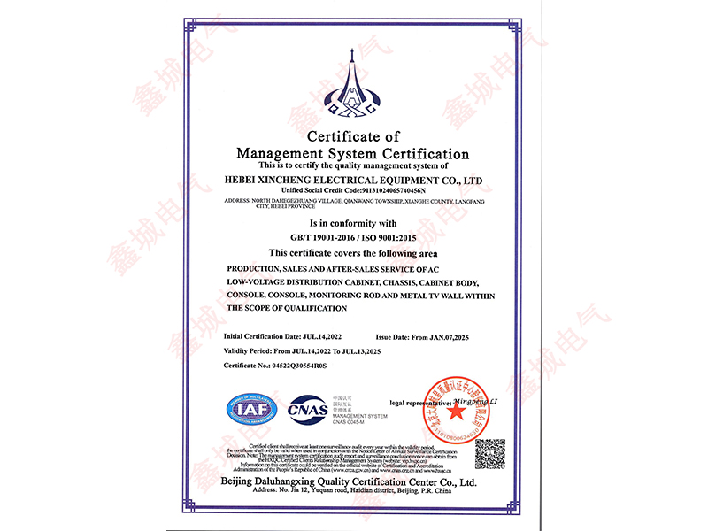 9001質量管理體系認證證書